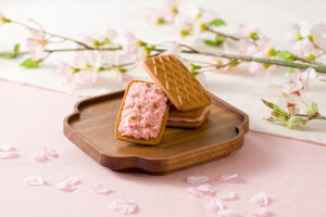「生しるこサンド桜」は、しっとりとしたビスケット生地に、春らしく淡い桜色の桜風味クリームをサンドし、上品な味わいに仕上げました。